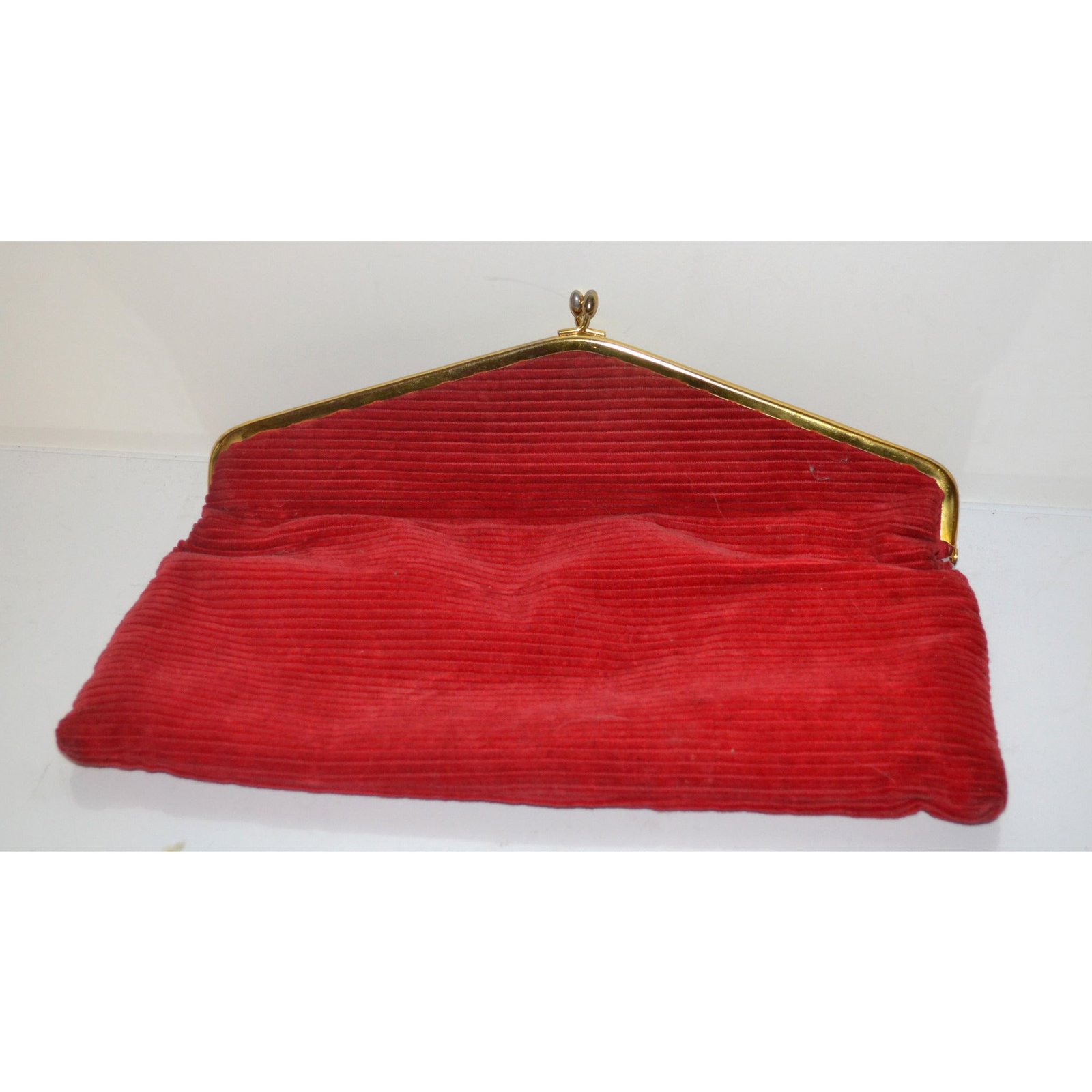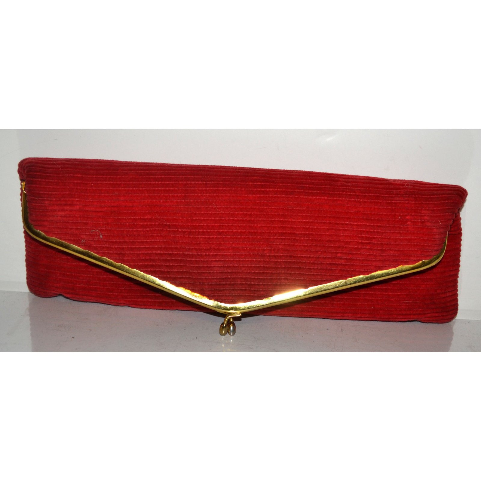This vintage red fold over corduroy clutch purse is fabric lined.