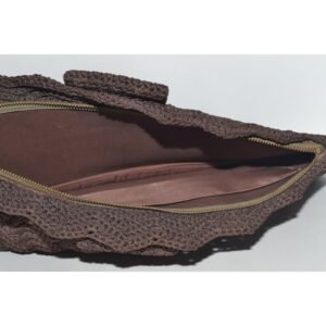 Brown Crochet Fan Clutch Purse