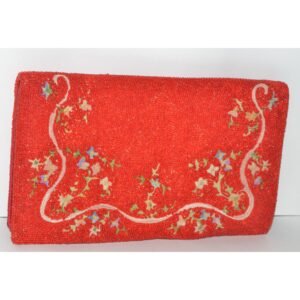 Red Beaded Embroidered Clutch Purse