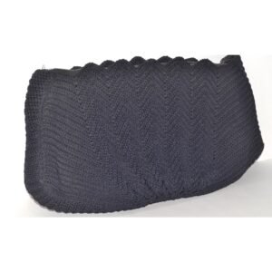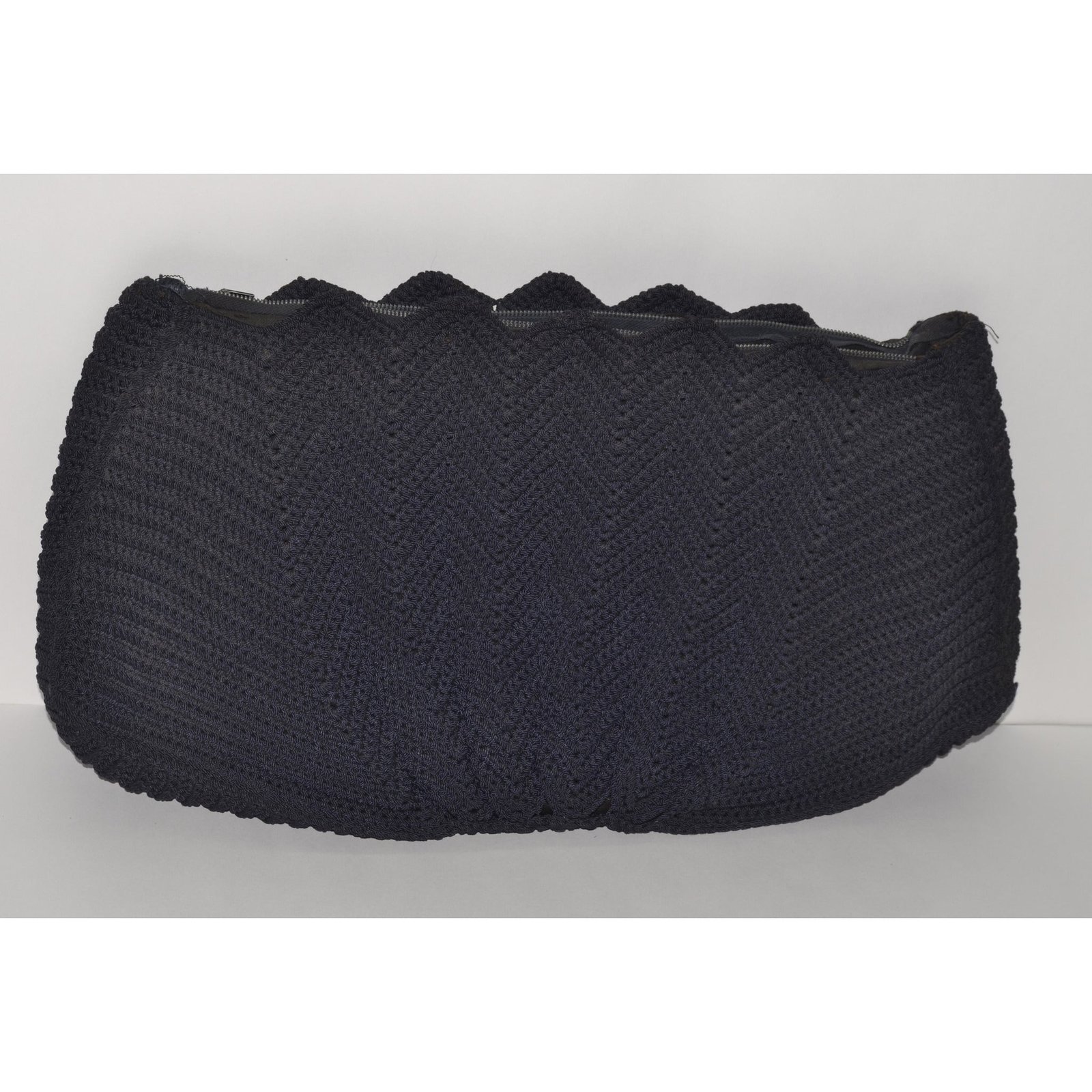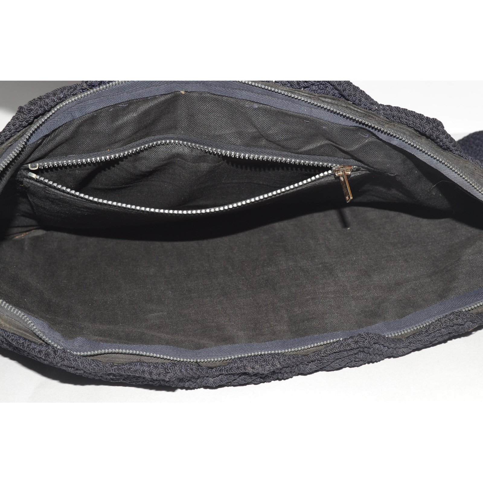 This very vintage black crocheted fan clutch purse has fabric lining and one zip pocket.