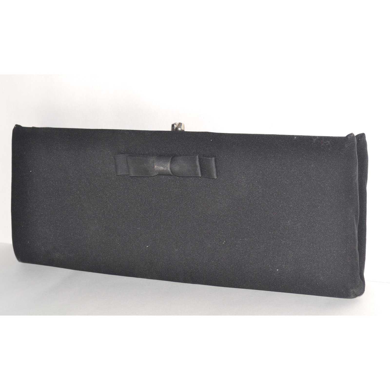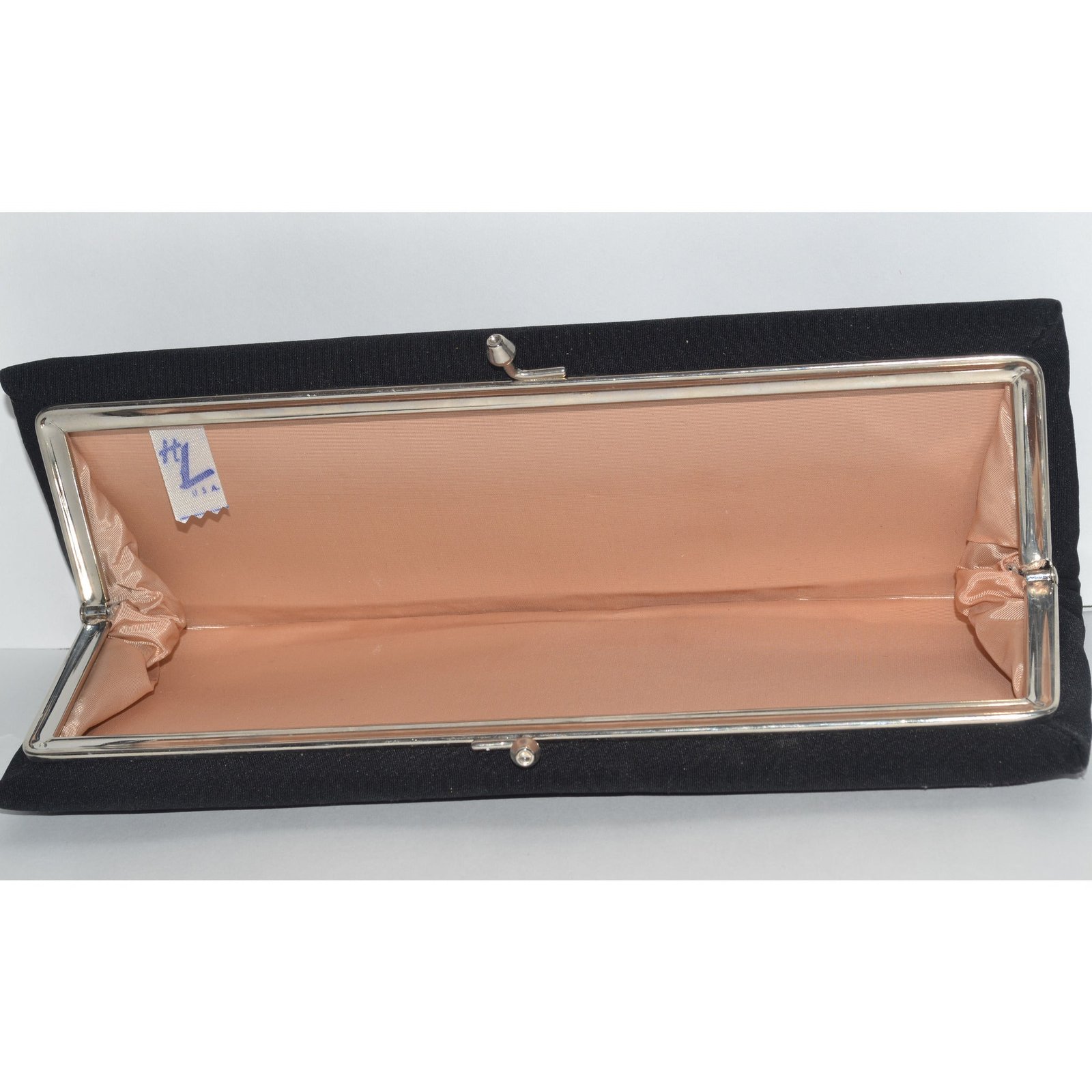 This simple and elegant vintage black clutch evening purse is from HL. Interior is fabric lined.