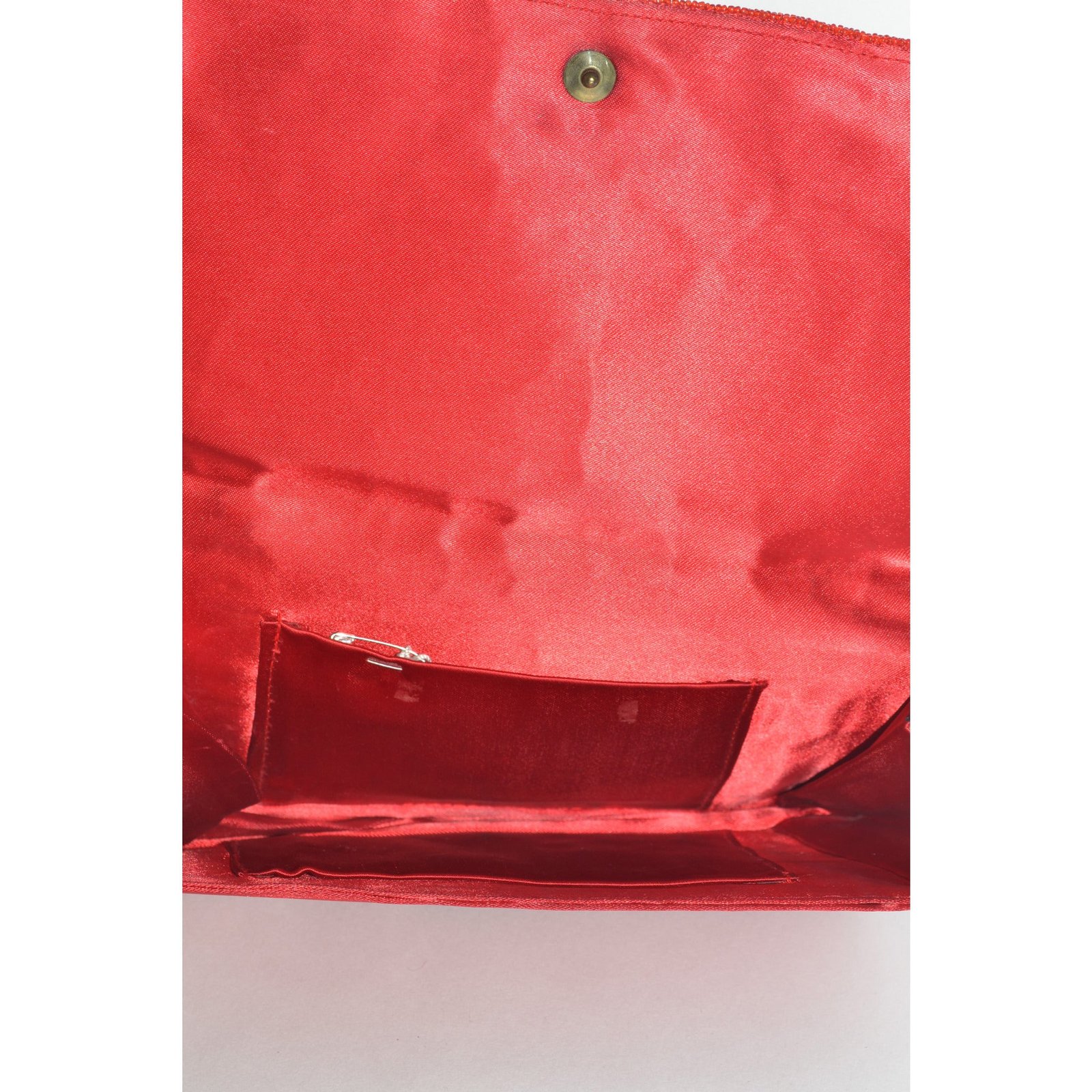 This vintage red beaded evening purse has floral embroidery on the face. Interior is fabric lined with 2 pockets.