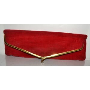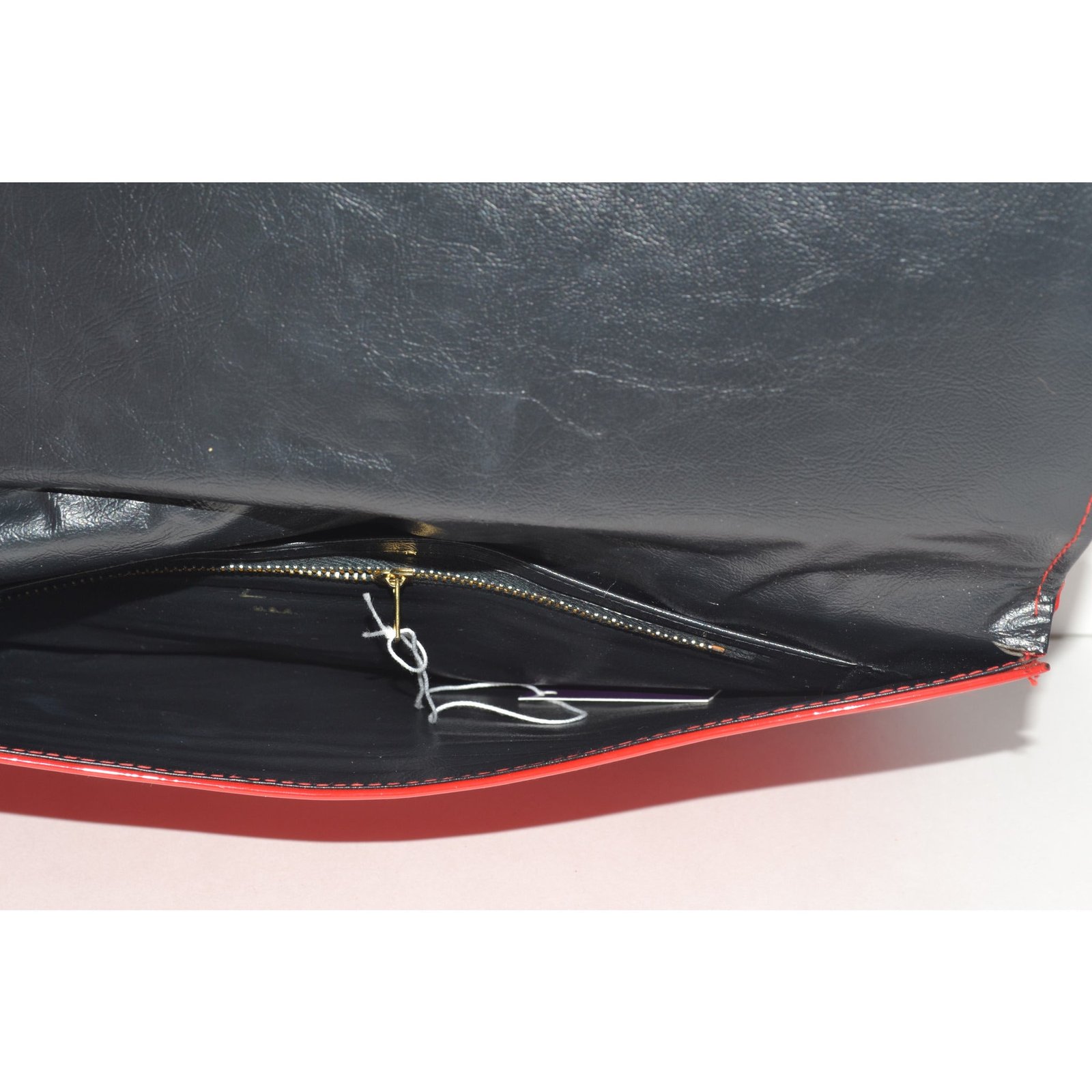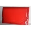 This vintage red envelope high gloss purse is from HL. Interior is vinyl lined with 2 pockets (one zip).